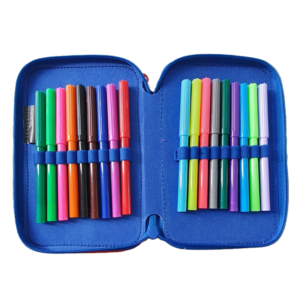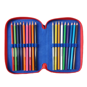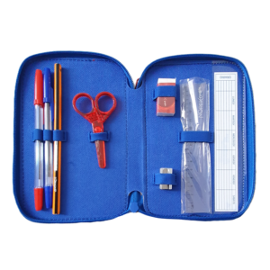 Contains: 18 colour pencils, 18 colour felt pens, 1 graphite pencil, 1 sharpener, 1 eraser, 1 blue pen, 1 red pen, 1 scissor & 1 ruler.