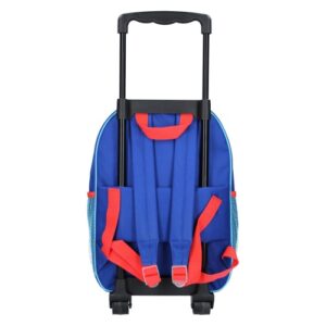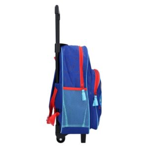 Bing trolley backpack. Children’s Bing travel trolley bag. Colour blue. Size 38 x 28 x 16 cm. Large & front compartment with zip opening. 2 wheels at the bottom to pull along. Extendable pull handle for easy transport. 2 mesh compartments on side of the trolley.