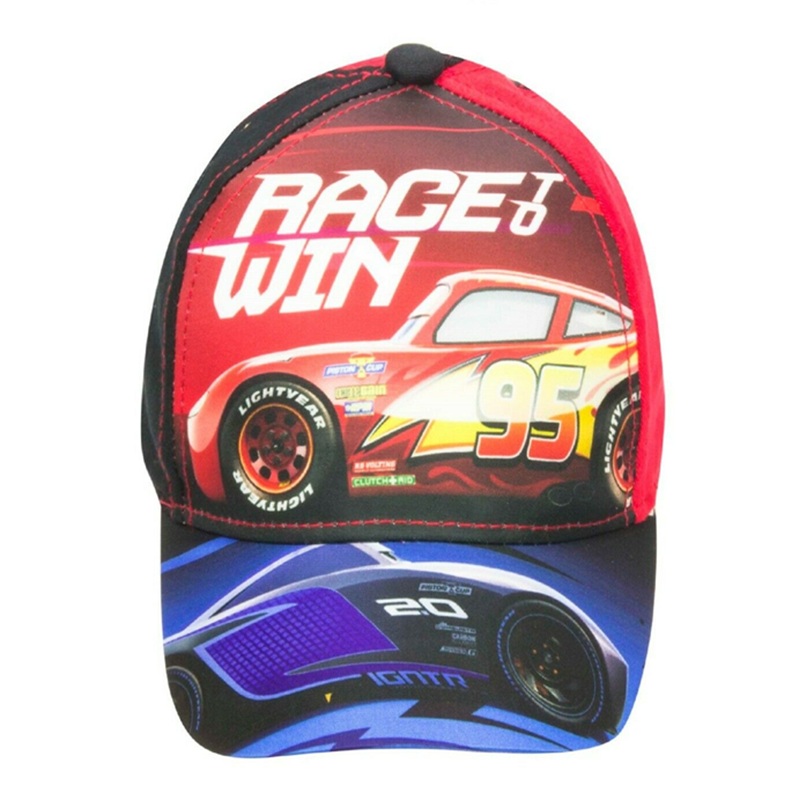 Cars cap. Kids Disney Lightning McQueen baseball cap. Adjustable back strap with velcro. Size 52 cm 3-5 years & 54 cm fits 5-8 years approx. Material cotton & polyester.