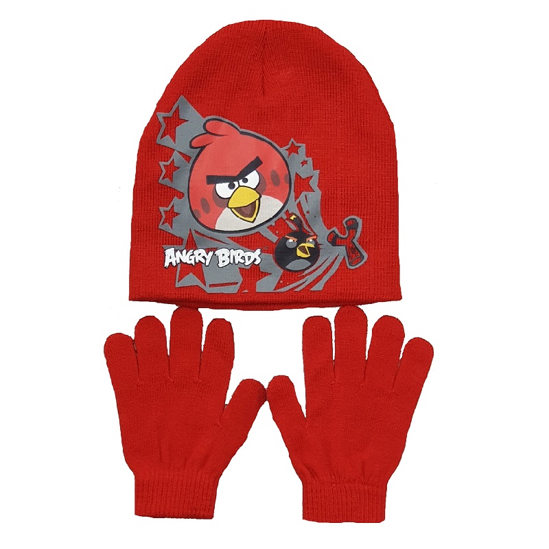 Angry Bird hat & gloves. Kids Angry Bird winter hat set. Age 3-8 years. Colour navy, grey or red. Material acrylic