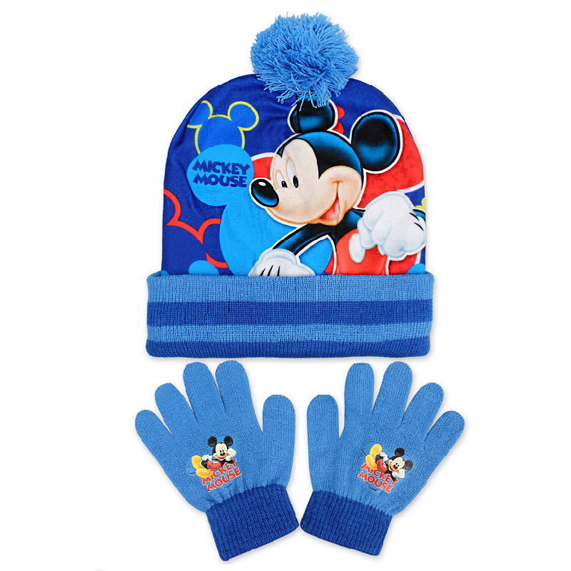Boys Disney Mickey Mouse beanie hat with pompom & gloves set.