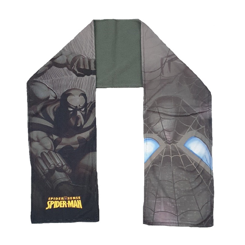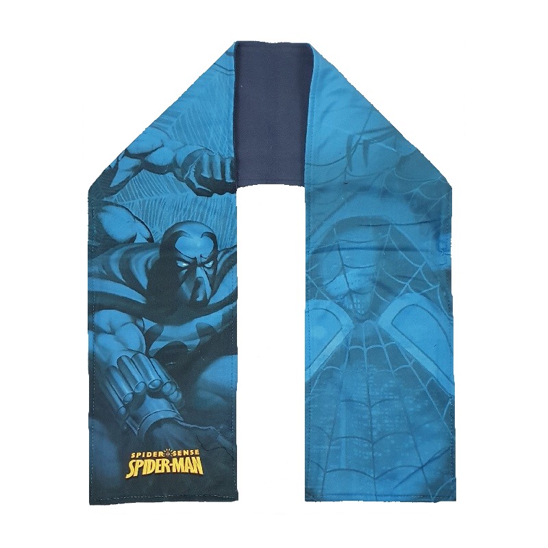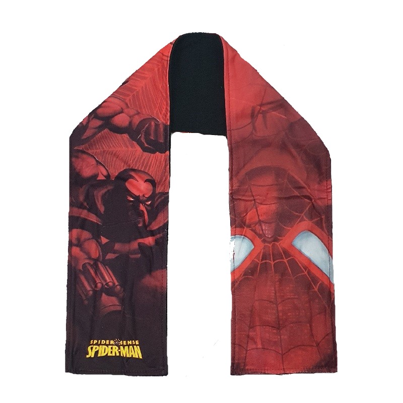 Spiderman scarf. Kids double layer Spiderman scarf. 3 colours available red, grey & blue. Size 18 x 120 cm approx. Material microfleece polyester.
