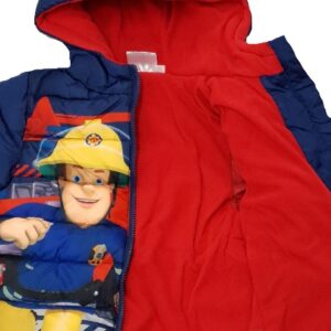 Fireman Sam jacket. Boys Fireman Sam winter jacket. Official licence product. Age 3-8 years. 2 colours available navy & blue. With fleece lining. Front image on jacket. With 2 pocket. Zip opening. Navy jacket with red lining & blue jacket with navy lining.