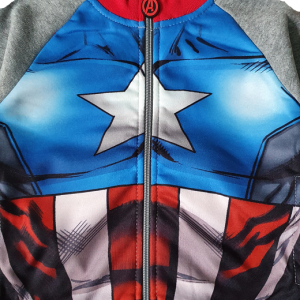 Avengers jogging suit. Boys Captain America tracksuit set. Colour grey or navy. Age 3-8 years. Material polyester. Front zip opening. Sublimation print on top & print on jogging bottom.