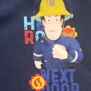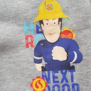 Fireman Sam jogging suit. Boys Fireman Sam jogging set. 2 colours available navy or grey. Material polyester with brushed fleece inside. 2 pockets on bottoms. Age 3-8 years. Sublimation print on top and print on bottoms.
