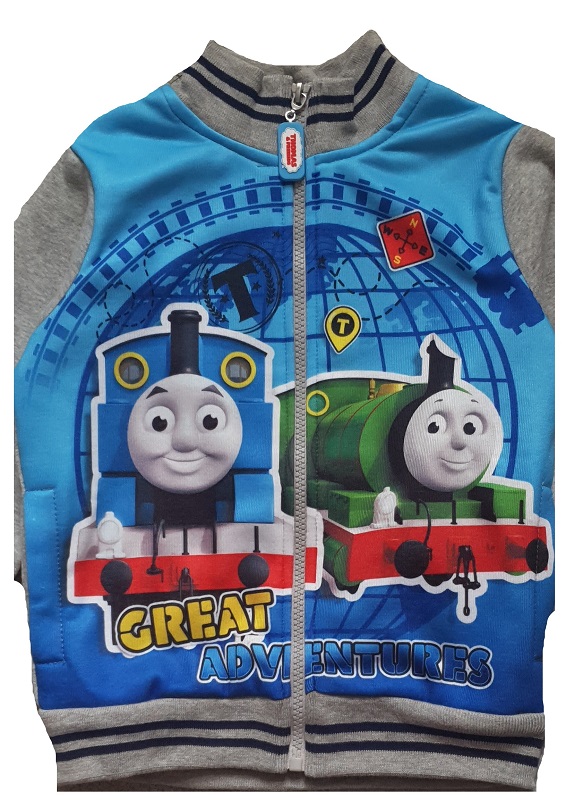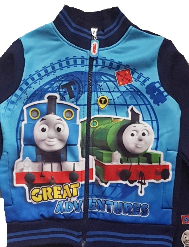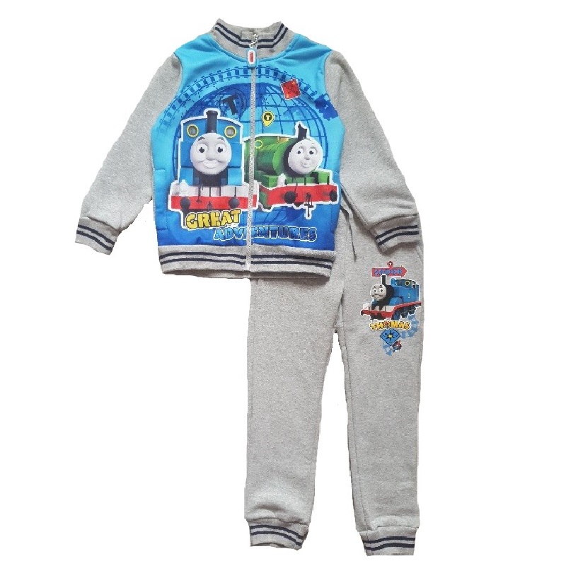 Thomas jogging suit. Boys Thomas the tank engine jogging suit. 2 colours available navy or grey. Material polyester with brushed fleece inside. 2 pocket on jogging top & 2 pockets on bottoms. Age 2-6 years. Sublimation print on top and print on bottoms.