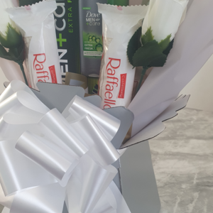 Raffaello chocolate bouquet with men’s Dove Men+ Care set. This bouquet can be given on any occasion.