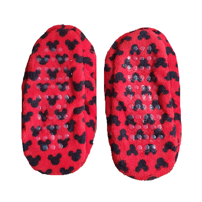 Mickey Mouse slippers. Boys Disney Mickey Mouse home slippers with anti slip. Colour red. Size UK 7.5-13. Inside material sherpa coral fleece. Outside material coral fleece. With anti-slip silicone outer sole.