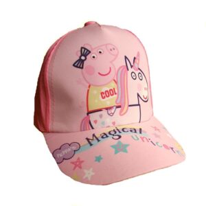 Peppa Pig cap. Girls Peppa Pig baseball cap. Size 50 & 52 cm, fits age 2-5 years. 3 colours available lilac, pink & light pink. Material cotton & polyester. Adjustable velcro strap at the back of the cap.