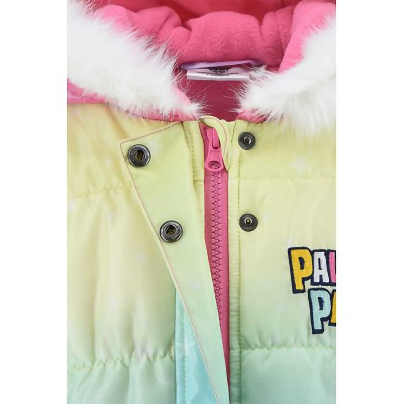 Paw Patrol jacket. Girls winter Paw Patrol coat. Zip opening. Multicoloured jacket. Age 3-6 years. Fake fur on hood. Microfleece inner lining for staying warm. Shell polyester. 2 pockets on jacket.