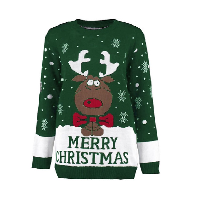 Christmas jumper. Kids bottle green reindeer bow knitted Christmas jumper. Age 3-12 years. Machine washable. Material acrylic.