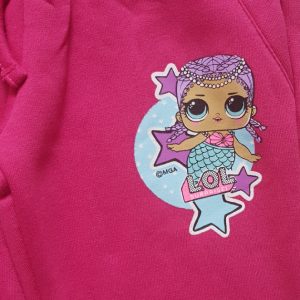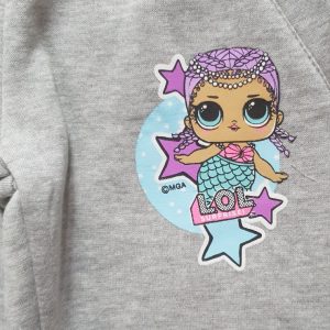 LOL jogging suit. Girls LOL Surprise jogging set. 2 colours available pink or grey. Material polyester with brushed fleece inside. 2 pockets on bottoms. Age 4-10 years. Sublimation print on top and print on bottoms.