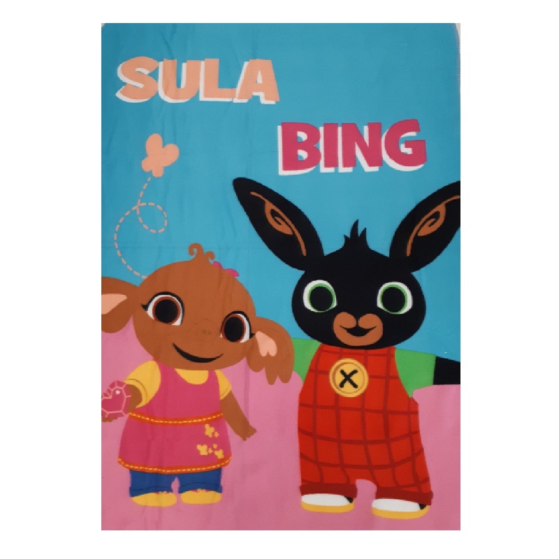 Official licence product. Girls Bing blanket. Size 100 x 140 cm. Colour pink & blue. Material micro fleece polyester. Machine washable.