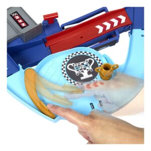 • Swing the winners circle gate and watch the winner spiral in to claim the trophy – the Global Racers Cup is included to add to the fun!