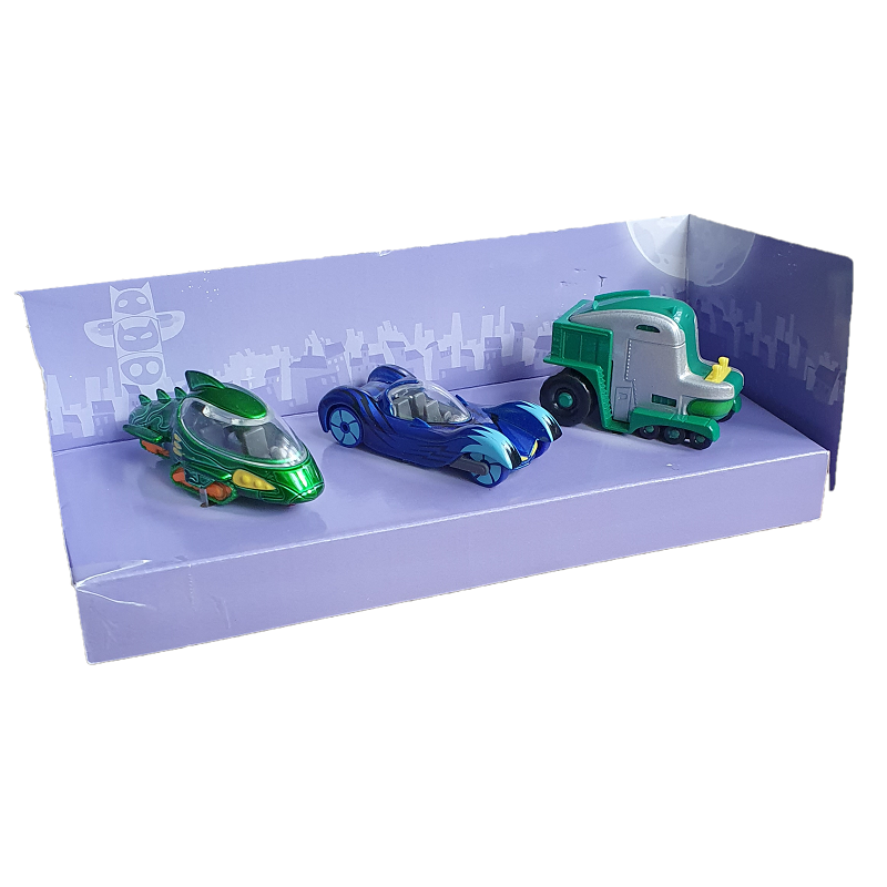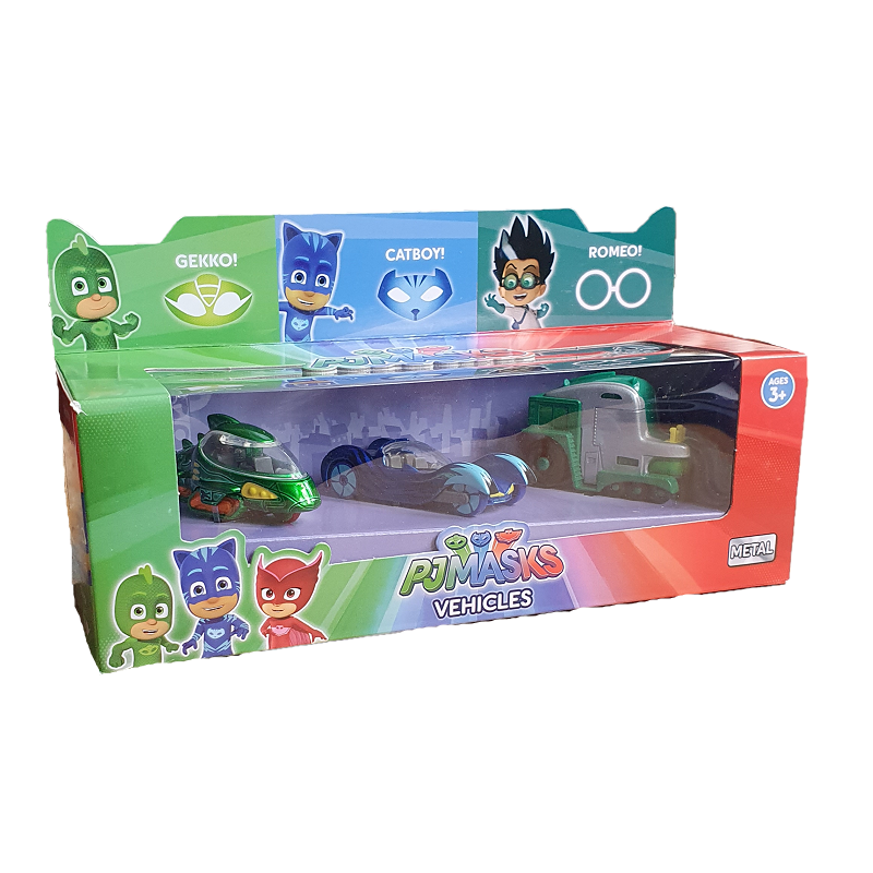 Embark on a PJ MASKS adventure into the night to save the day with this range of die-cast vehicles! All 3 hero vehicles and 2 villain vehicles are available to collect (sold separate) – Cat-Car, Gekko Mobile, Owl-Glider, Night Ninja Bus and Romeo’s Lab in various paint finishes. All vehicles are 3 and feature a high quality die-cast body shell. Suitable for 3 years +.